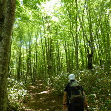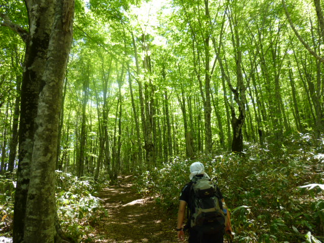 新緑がキラキラ眩しいハンサムな表磐梯から登山開始。