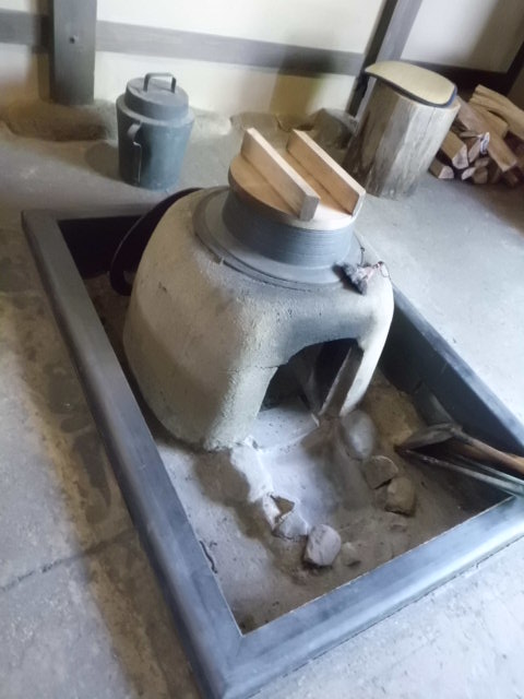 今井まちや館には床を掘ったところにかまどがありますが、後には旧米谷家などのように使いやすいように少し高い位置に作られるようになったそうです。