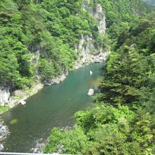 吊り橋から下を覗くと鬼怒川の流れも美しく絶景