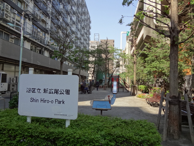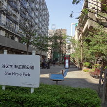 首都高の高架橋と高層住宅に囲まれた狭い区域に造られた公園です。