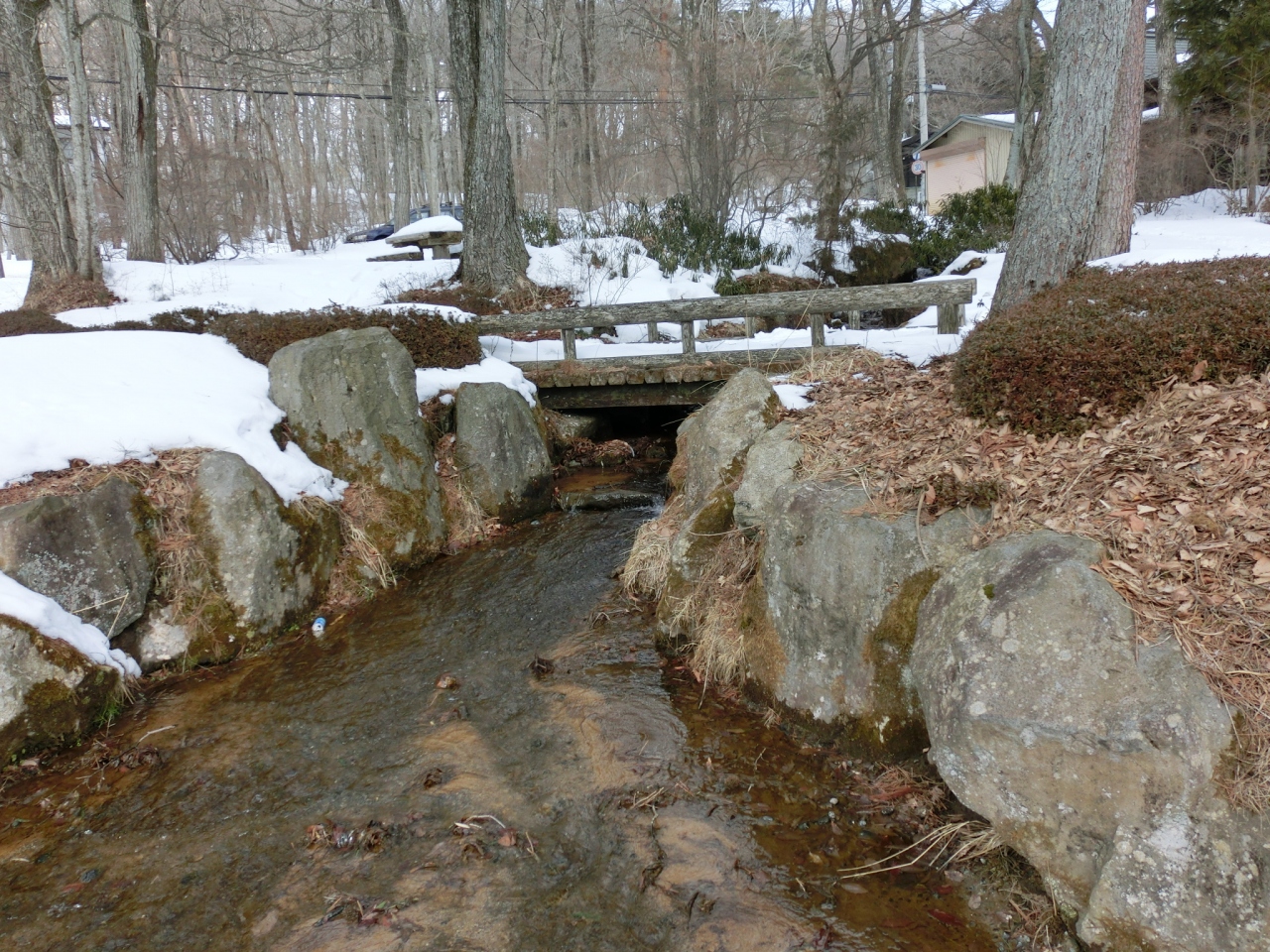 公園内は木が多く、中央あたりに小さな川が流れています。
