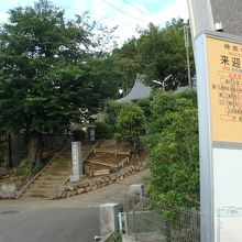 来迎寺バス停があります。戸塚駅・プルーラインの踊場駅からも歩けますが15分ぐらいです。浄土宗来迎寺の石柱と石段があり一段高くなっているところです。特に記するほどの寺院ではありませんが、地元の人には各所で呼び名として知られています(来迎寺トンネルなど)