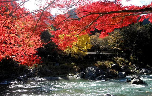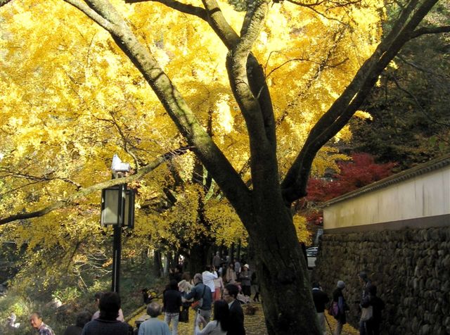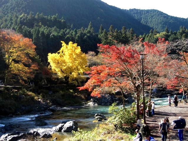 玉堂美術館前の銀杏の黄葉と渓谷沿いの楓の紅葉が丁度見頃を迎え、