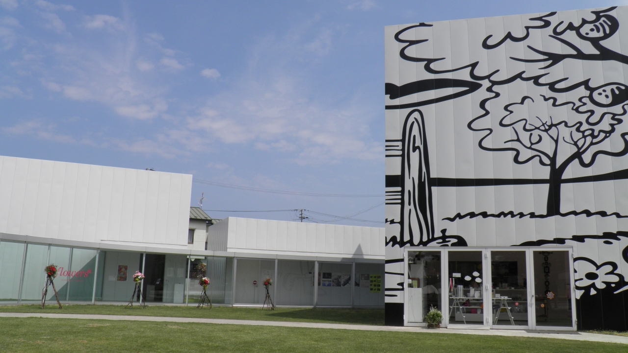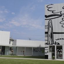 まず目がつくの建物の開放感と道路向かいの公園のオブジェ?