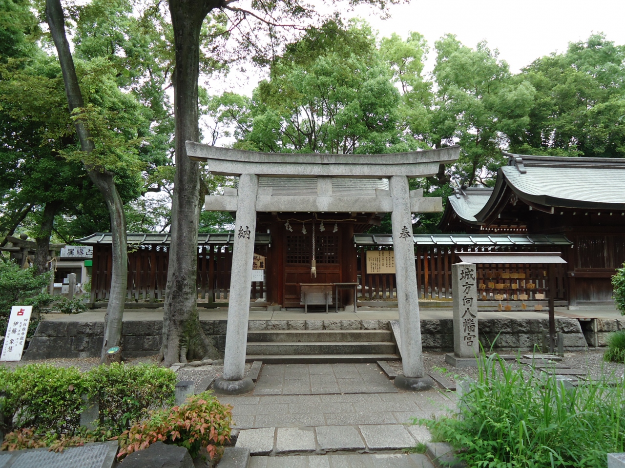 生國魂神社の中に城方向八幡宮があります。勝運、方除けの神様として信仰を集める神社です。城方向と書いてきたむきと読みます。他にもこのような神社がありそれぞれ得意とするご利益の案内がありました。地下鉄谷町線谷町九丁目駅から歩いて8分くらいです。