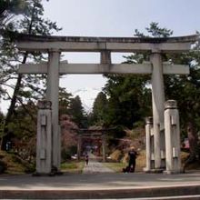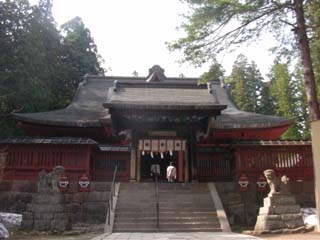 神社の参道を進むと正面に岩木山の山頂が見えて、参道がそのまま登山道になっています。本来はこの神社に参拝してから、山頂にある奥宮に参拝するのが順序です、今回は逆になりましたが、坂になった長い参道を進むと幾つも鳥居があり、神仏習合のなごりか山門の先に天井絵のある拝殿がありました。
