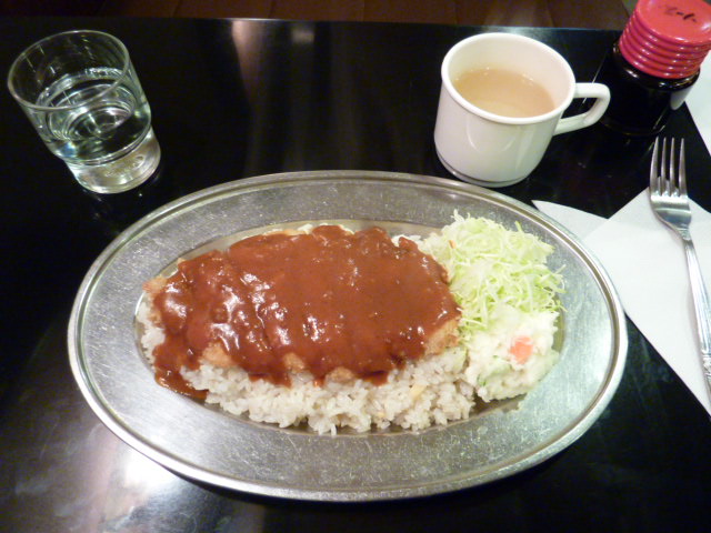 エスカロップのバターライスは、ややコショウが効き過ぎている感があり、デミグラスソースも結構濃い味でした。
