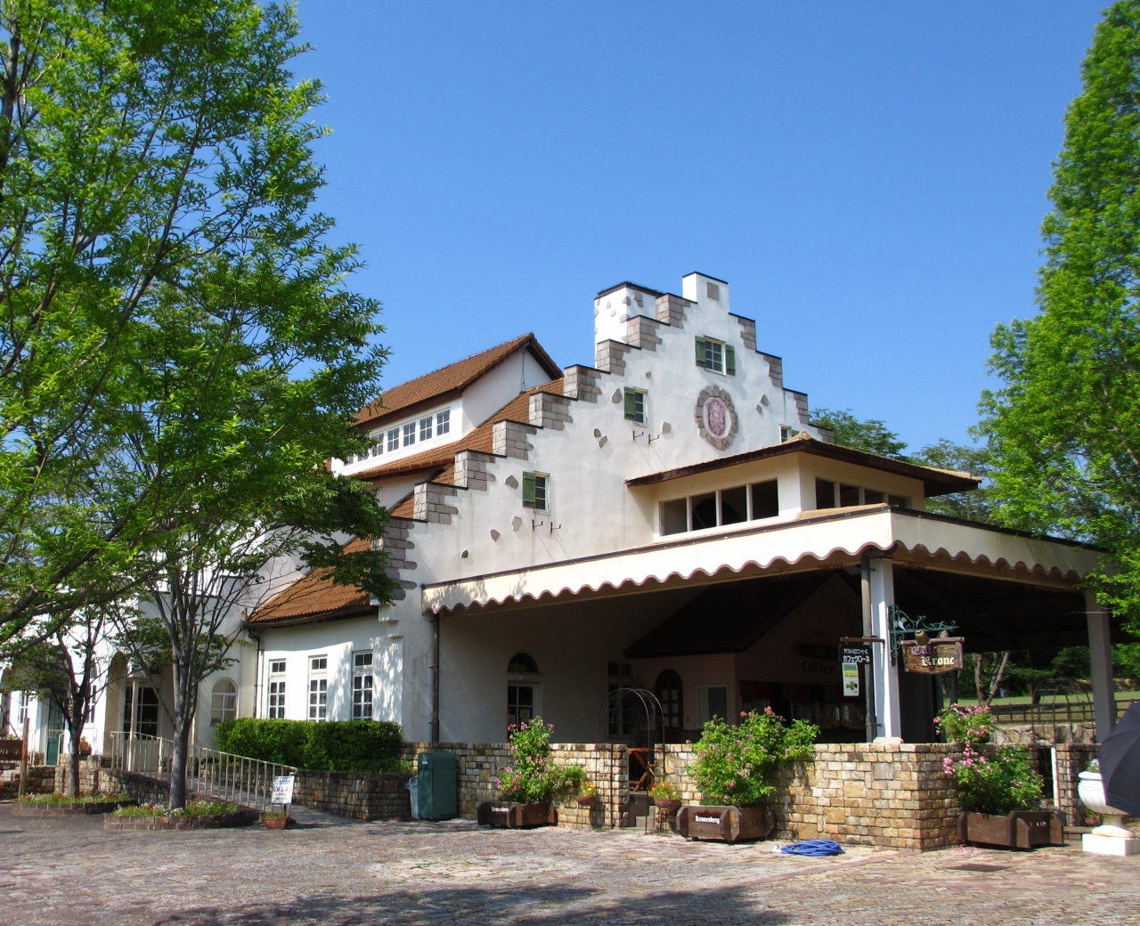 緑とドイツの街並、建物がとても雰囲気があります。