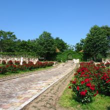 園内にあるバラ園では黄色やピンク、赤のバラが咲いていました。