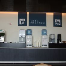 こちらの休憩所にはグリーンティー、アイスコーヒー、コーヒー、お茶が無料で頂けます。