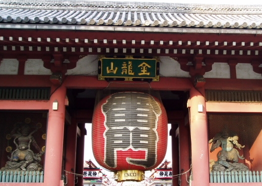 浅草寺の総門として威厳を誇っています、大きな提灯が印象的です。