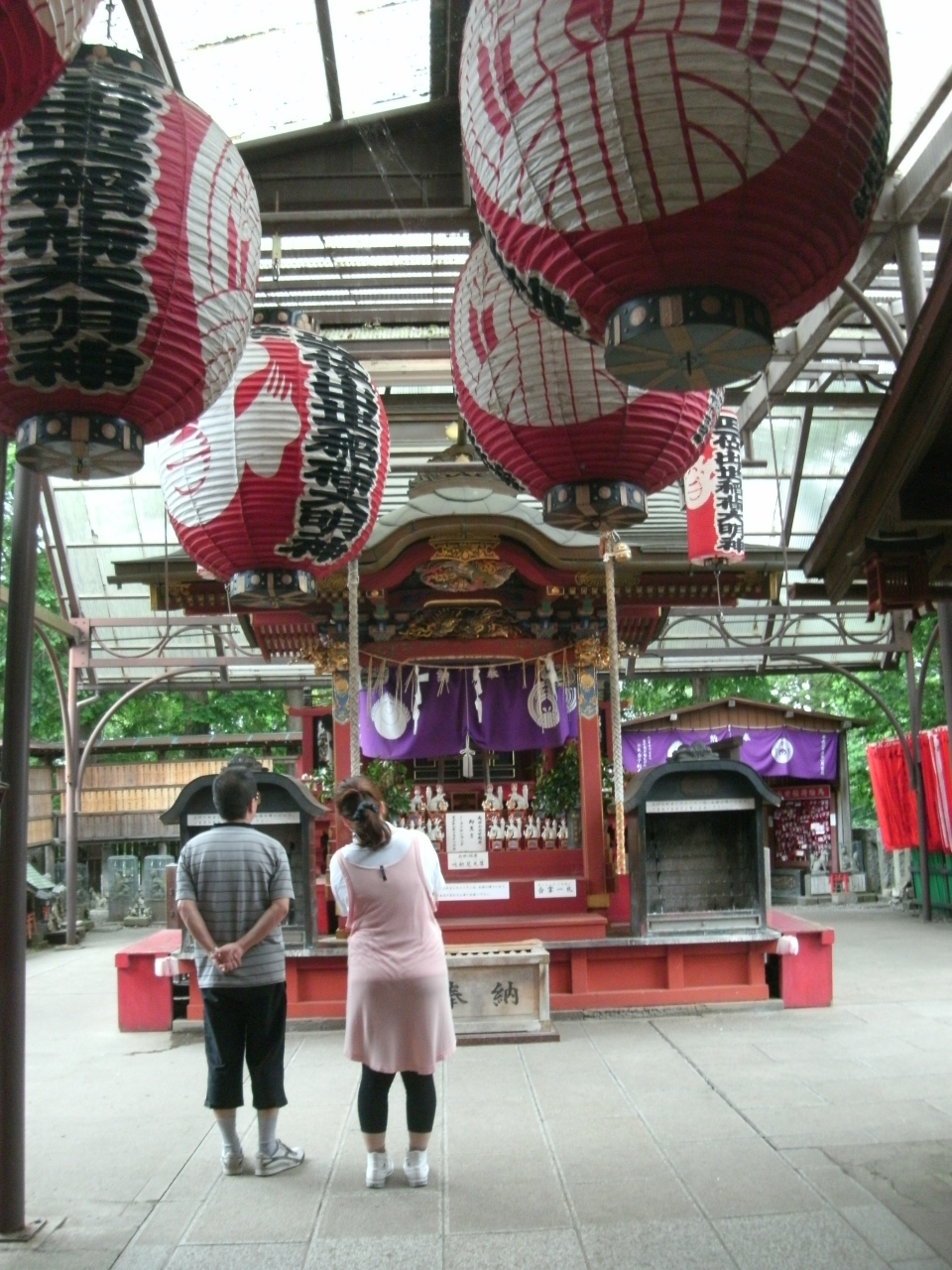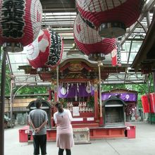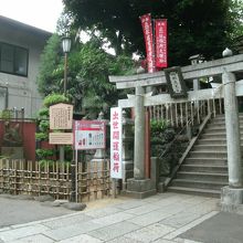 新勝寺境内からですと急な石段登ったところにあります。神額には「枳尼天尊」とあり、立看は出世開運稲荷とあります。大きな提灯には出世稲荷大明神とありました。オキツネさまがたくさん居られます。ご利益ある神社とのことですので充分お参りさせていただきました。