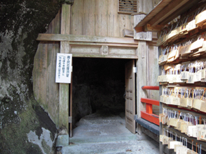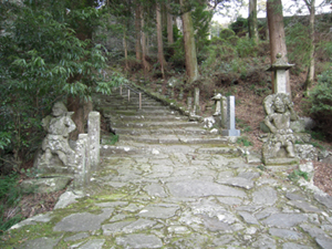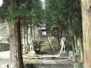 両子寺は江戸期に六郷満山寺院の総持院となり、繁栄期を迎えました。山門にたたずむ国東随一の仁王像はとても威厳を感じます。仁王の前には朱塗りの無明橋がかかっており、、独特の雰囲気を醸しだしています。この橋を渡る人は一切の煩悩を断ってひたすら信仰を持たなければいけないと言われています。煩悩の塊のような私にはちょっと荷が重い感じでした。仁王像に見とれているとほんの一瞬ですが雪が舞ってきました。空は青空。白い雪が仁王像を包み込み幻想的な雰囲気になりました。しばし、感慨にふけり、山道を登っていくと総合門にたどり行きます。この門は900余年という歴史に秘められています。なおも登っていくと両子寺会館にたどり着きます。入館料200円なりを払って中へ・・・。寺伝によると仁聞(にんもん)が修行の折、観音様が現れ、男女二童子を授けたところから両子寺とし、子授けの霊地となったと言われています。隣にある護摩堂には本尊の木造不動明王が安置されていました。境内には多くの石仏があります。国東塔、庚申塔、宝篋印塔(ほうきょいんとう)・・・。階段を登って奥の院まで上がってみました。奥の院には本尊仏の千手観音(せんじゅかんのん)がまつられています。奥の院の隣の洞窟には不老不死の水が湧き出る洞窟があります。これを飲んで私は不老不死になるのだ!