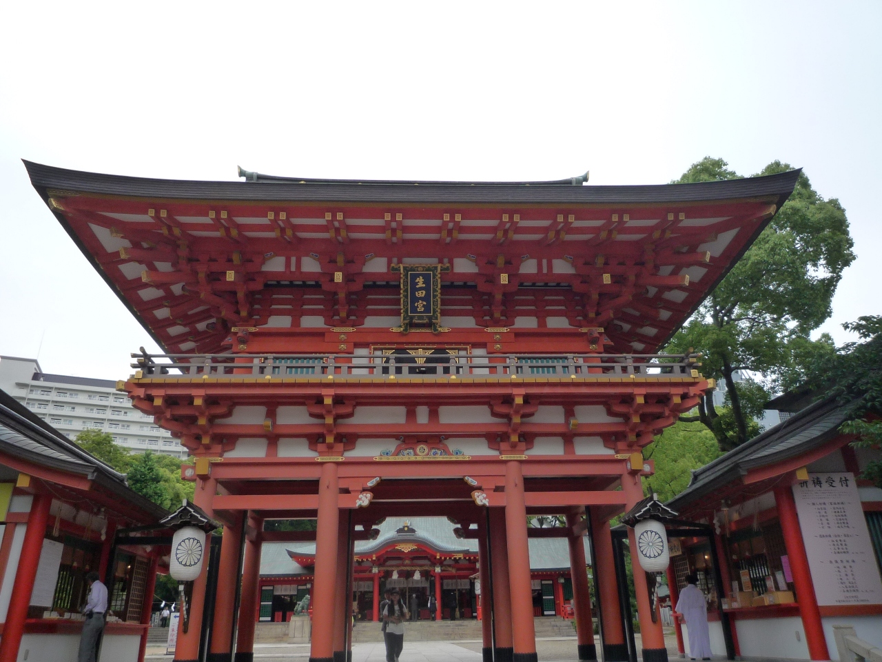 JR三ノ宮駅から北西へ徒歩10分ほど、神戸の中心市街地にあります。朱塗りの立派な神殿を見ると新しいのかと思いきや1800年以上の歴史がある古社だそうです。境内は周囲の賑やかな街とは別世界といった感じです。裏手には「生田の森」と呼ばれるこんもりとした森がありますが、かつては源平の戦場にもなった森が今では市民の憩いの場になっています。