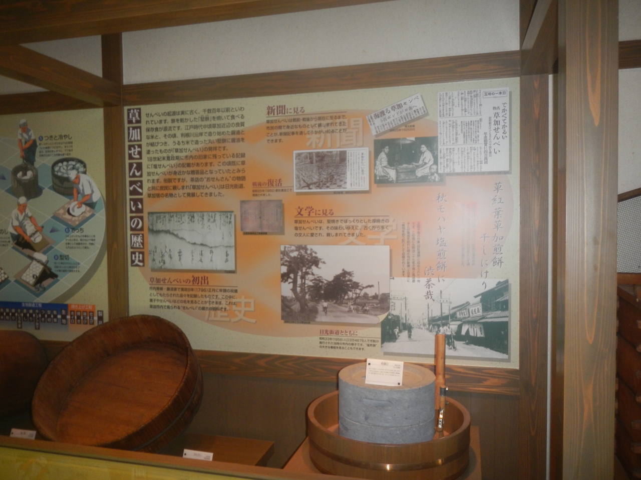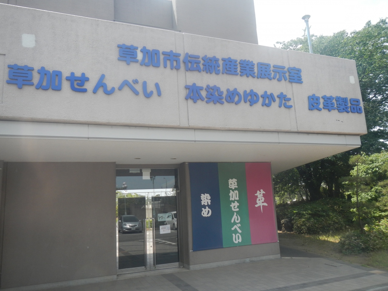 草加市文化会館の1階にある、草加の地場産業を紹介している施設。草加といえば「せんべい」が有名だが、ほかにもハンドバッグや靴など「皮革製品」、「ゆかた染め」が地場産業としてある。それらの歴史や製造工程を紹介、販売を行っている。