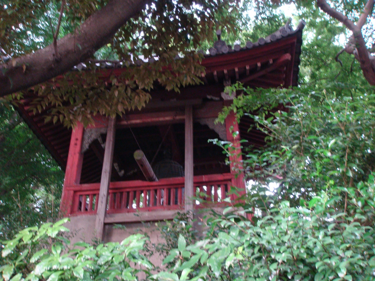 上野公園内にある時鐘堂は上野精養軒の近く、鐘は木々に囲まれ見上げるような高さにあります。