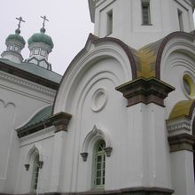 ロシア領事館付属聖堂として安政5年(1858年)に建てられた日本最古のギリシア正教会の聖堂で、大正5年(1916年)に再建されたものです。昭和58年(1983年)に聖堂が国の重要文化財に指定されています。聖堂内は静かで正面にはたくさんのイコンで飾られており、厳粛な凜とした雰囲気が漂っていました。館内見学(献金として)は200円必要です。