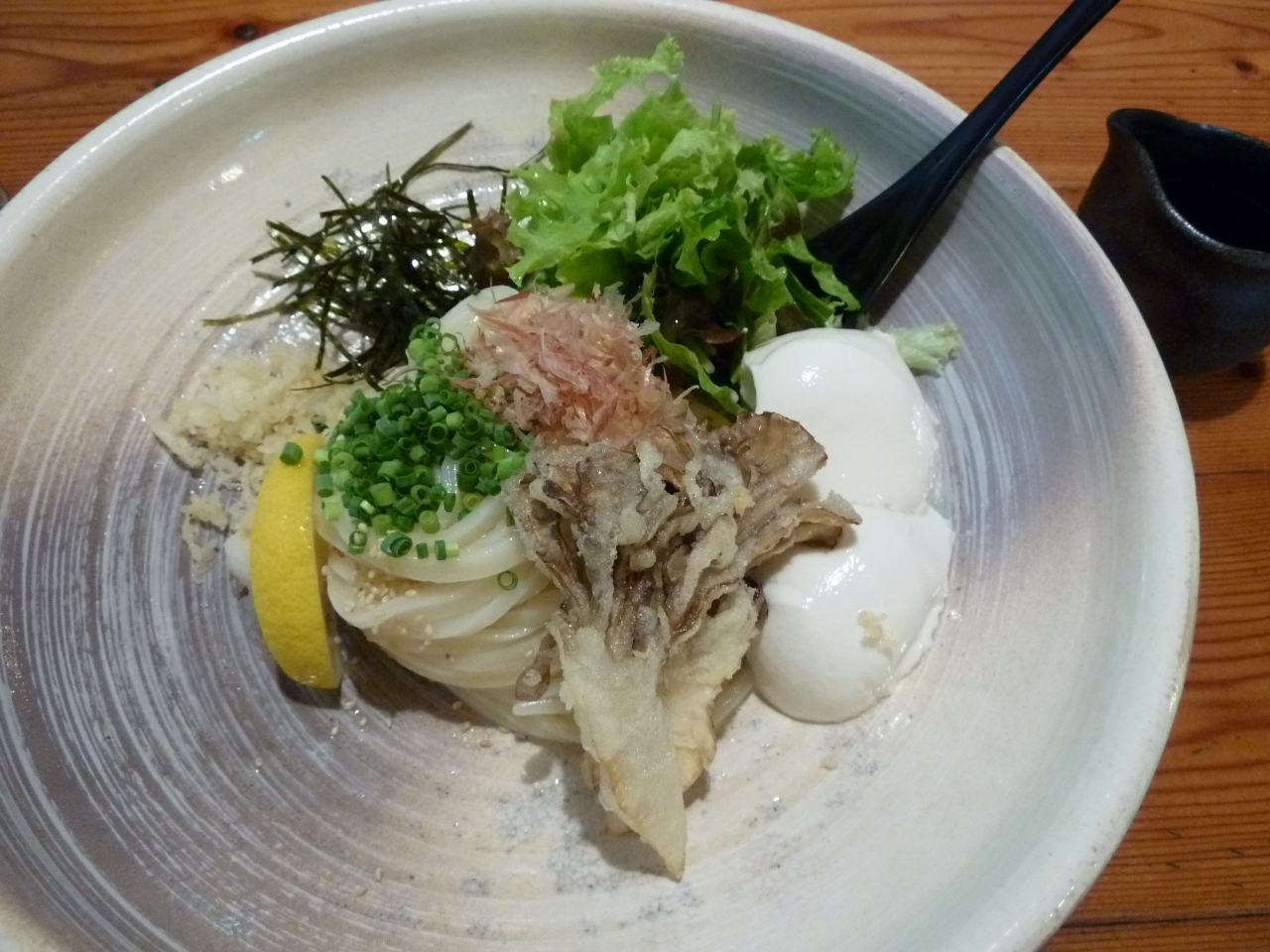 うどんは「自家製豆腐と舞茸天のぶっかけうどん」を