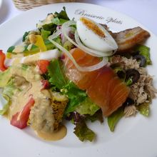毎回前菜でサラダを注文します.内容は季節に応じて少しだけ変わりますが大体毎回同じです.量も多く大変満足な気持ちになります.メインは定番のステーキ+ポテトや豚料理,魚料理などがありました.そして最後にサービスで焼きたてのマドレーヌがついてきます.食べきれない人には持ち帰りようの袋も用意してくれます.