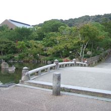 池には立派な太鼓橋が架かっていて日本庭園の様な雰囲気です。