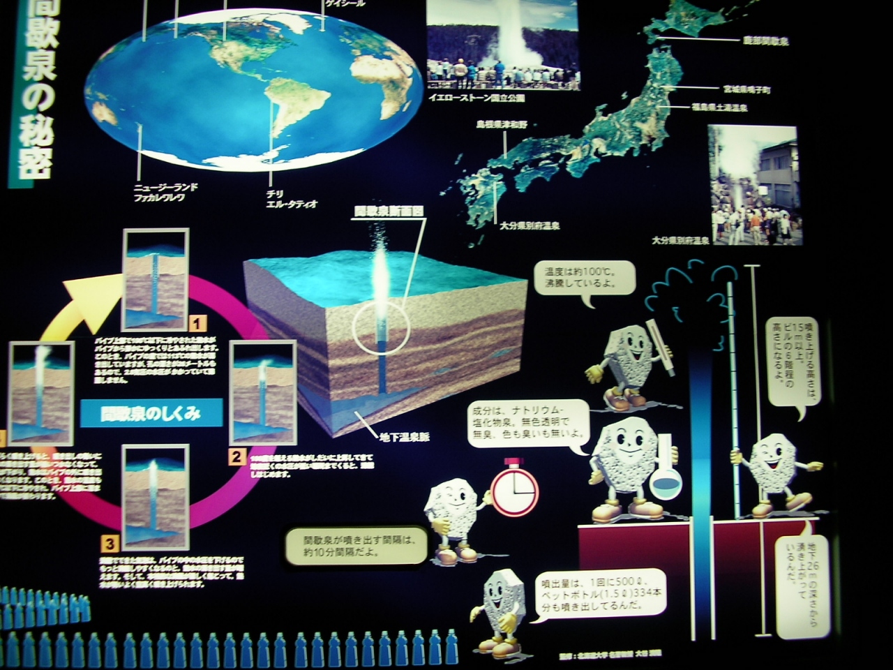 駒ヶ岳の東側に位置する鹿部町に「しかべ間歇泉公園」があります。この間歇泉は10分おきに噴出し、噴き出す温泉は100℃の熱湯で高さは最大で15mにも達し、結構迫力がありますが、数十秒であっというまに終わります。公園内には足湯コーナーや資料館などもあって、待ち時間10分は気になりませんでした。入場料は300円です。