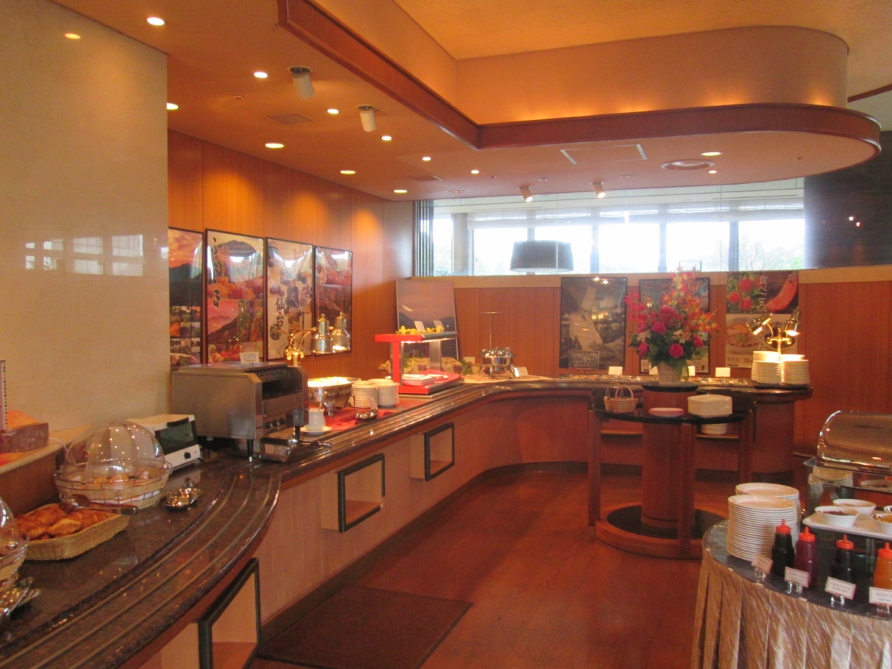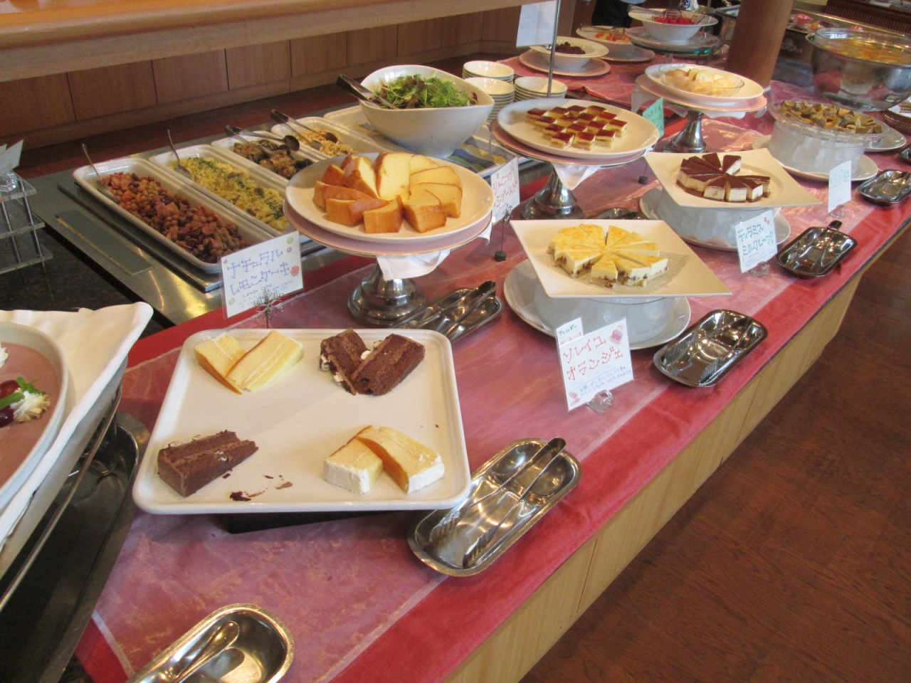 ホテルをチェックアウトした後、ランチで利用しました。料金は2400円という利用しやすいもので、洋食中心の和洋ビュッフェといった感じです。料理の内容は、ほぼ毎月のように変わるテーマ、例えば今月はフランスだとか、来月は日本の中部地方といったようなテーマにそった料理が楽しめます。ちなみに今回のテーマは「東北みちのく」でした。料理の種類は多くはないと思いますが、どれも丁寧につくられた印象で美味しいものが多いです。ライブキッチンでもテーマを代表するような料理が提供されており、毎回楽しみにしています。フロア・スタッフの数は多くありませんが、仕事はテキパキ行い、接客も悪くありません。ただ料金を安め設定すると…。ホテルらしい雰囲気を求めて訪れると少しガッカリするかも。