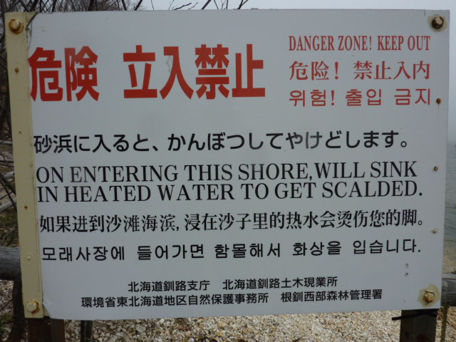 一番奥まで行くと阿寒湖の水辺に出ますが、高温(地熱)により危険なため、立ち入り禁止となっています。