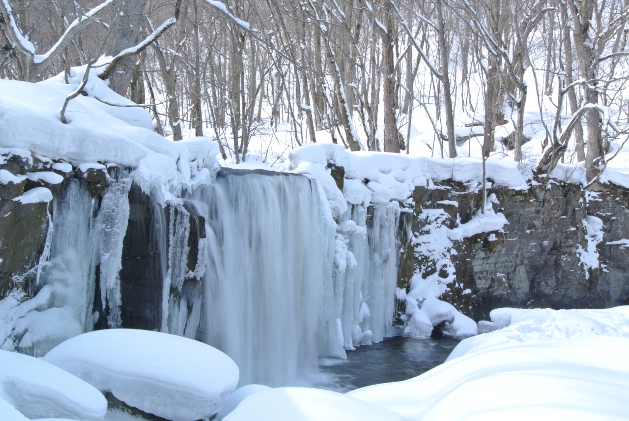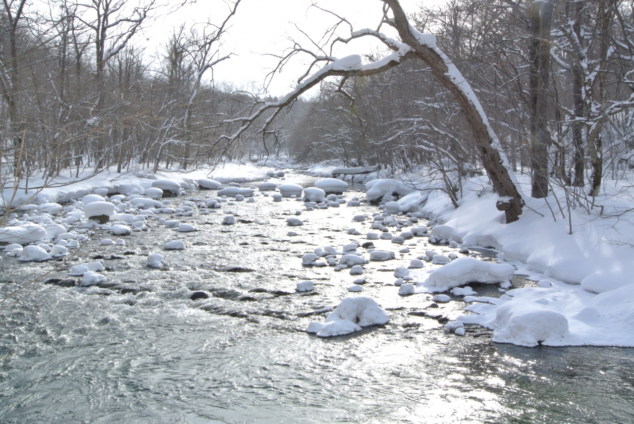 - 渓流と雪の組み合わせは雪国でしか見られない風物詩