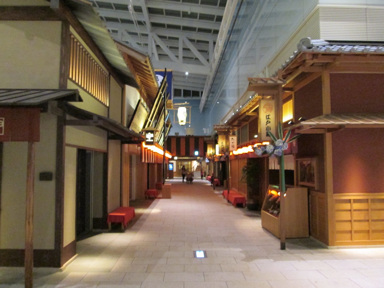 6/6(木)の深夜に国際線ターミナルを利用しました。23時過ぎに空港に到着すると、売店、レストランは閉店していました。食事は江戸小路横のカフェか、出国審査が終了してすぐのところに小さいフードコートがありますが、期待できませんので、夕飯は済ませて空港に到着しました。