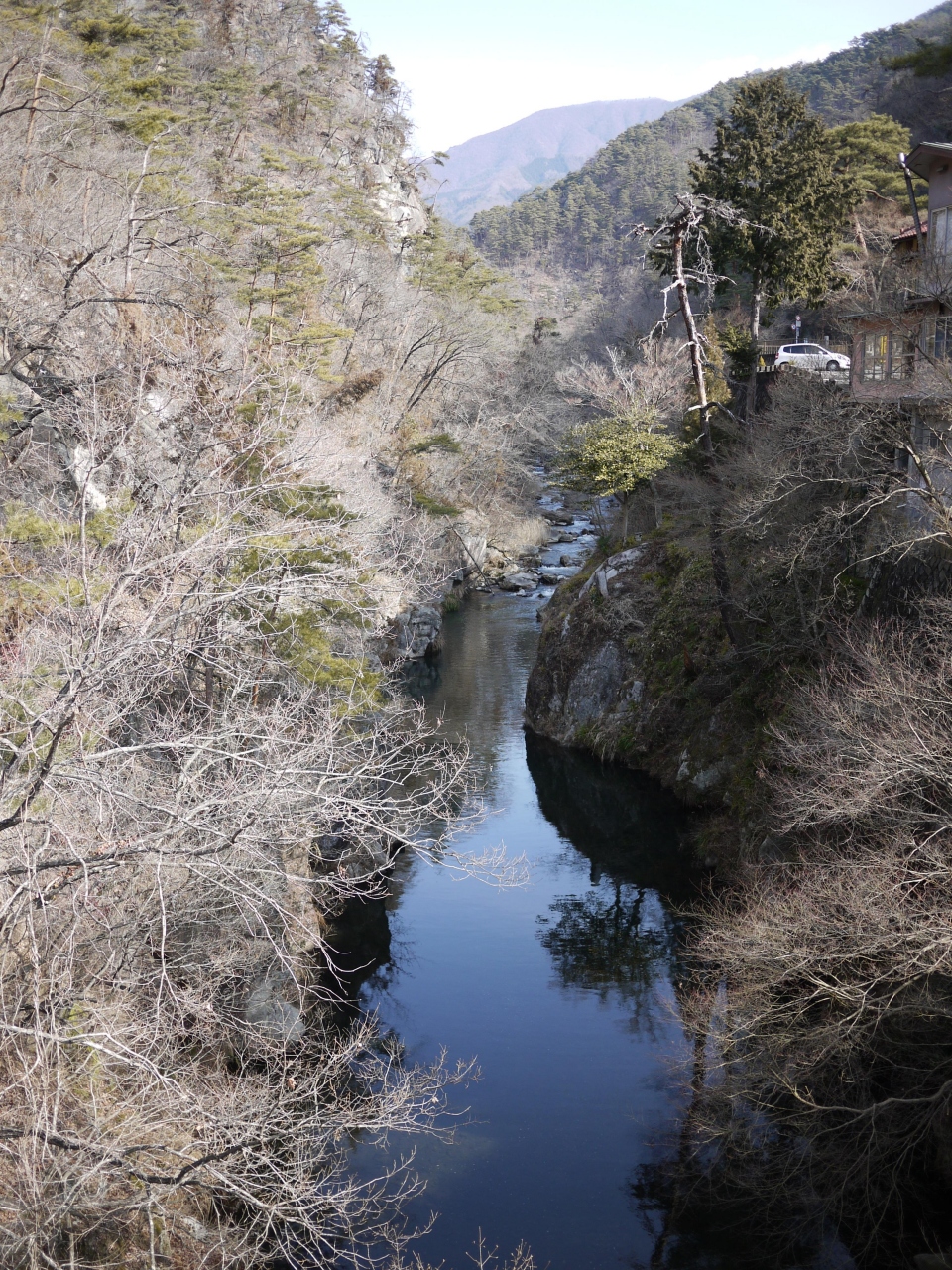 冬に行くのはおすすめしません。甲府駅からバスで行きましたが、乗客は少なく、このまま行って大丈夫なのかと心配になりましたが、案の定、渓谷には人っこ一人いない、葉も落ちた寂しい風景が広がっていました。まぁ、それも一興でしょうか。すいているのはいいですが。