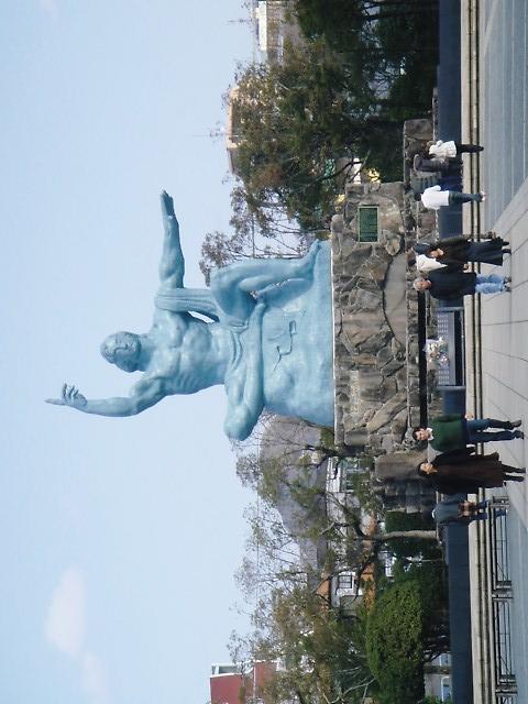 いつもテレビで見ている公園が目の前に広がっていました。意外と普通の公園でしたが、それでも大きな銅像を見て、長崎県民の平和への祈りの強さを感じました。ここを訪れて、二度と同じ過ちをしないで欲しい、そう強く思いました。