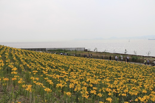 大阪湾を一望する丘の上に200万輪のゆりが咲いています。