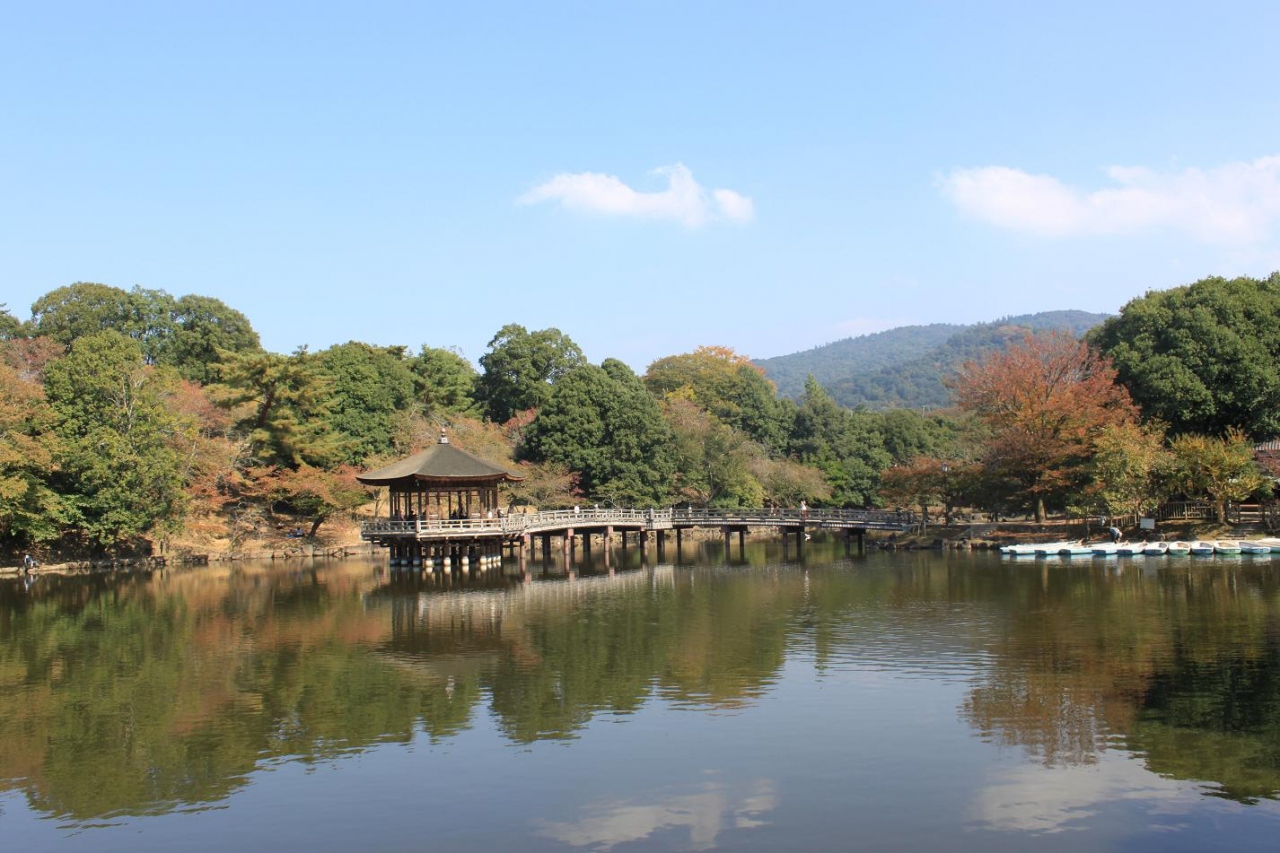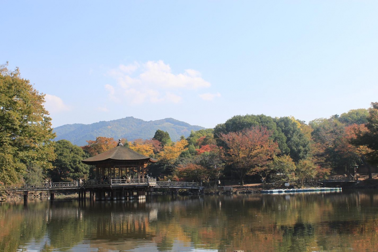 背後の春日山に映え、池に映る姿も美しいです。