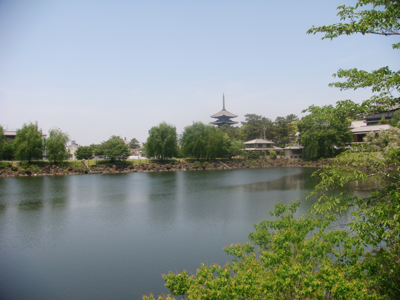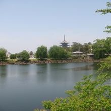 西の池越しから見る興福寺五重塔の景色も美しいです、絵になります。