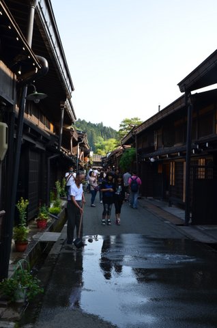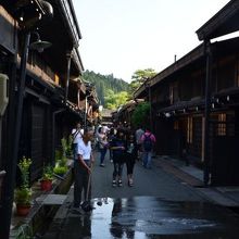 高山の城下町の中心、商人町として発達した宮川と平行につながる一之町、二之町、三之町を合わせて通称「三町」といい古い町並みが保存されています。出格子の連なる軒下には用水が流れ、軒下には酒林がさがる造り酒屋や老舗が軒を並べる古い町家が今尚残り、三町伝統的建造物群保存地区として指定されています。