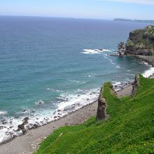 「積丹海岸」は、“ニセコ積丹小樽海岸国定公園”に指定されている内の「積丹・小樽海岸地区」に属する海岸で、積丹半島の火山群の山裾が直接日本海の荒波に洗われ、海面から100m以上の高さの海蝕崖景観を形成しており、切り立った断崖や奇岩、シャコタンブルーといわれる「神威岬」や「積丹岬」の景観は絶景です。また、随所に窓岩、神威岩、女郎子岩、ローソク岩などの奇岩、怪石類、岩礁が見られ、海浜にはハマナス、ハマエンドウ、エゾスカシユリ等も見られます。ハイキング、キャンプといった自然探勝や、海水浴、海釣りなども楽しまれています。