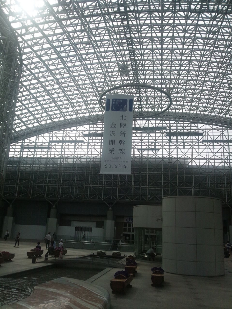 もてなしドームは、金沢駅東口の出口になります。鼓門と一体で出来ており、3000枚位のガラスが組み立てられれて出来ています。2005年にできたそうです。今は新幹線の駅の工事が進んでます。低層部は空気道があるので、暑くないです。自動でガラスを掃除している機械を天井の方でまれに見つけることができます。