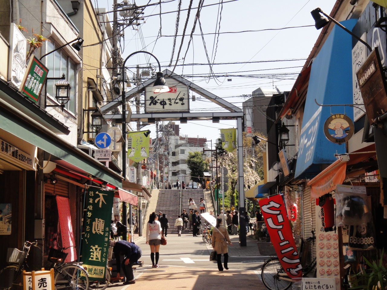 西日暮里駅を西にまっすぐ歩くと下り階段にぶつかります。そこが夕焼けだんだん、石段の上から西の空に夕焼けが見えたことから名づけられたのでしょうか。夕方でなくてもちょっとした写真スポットです。