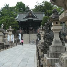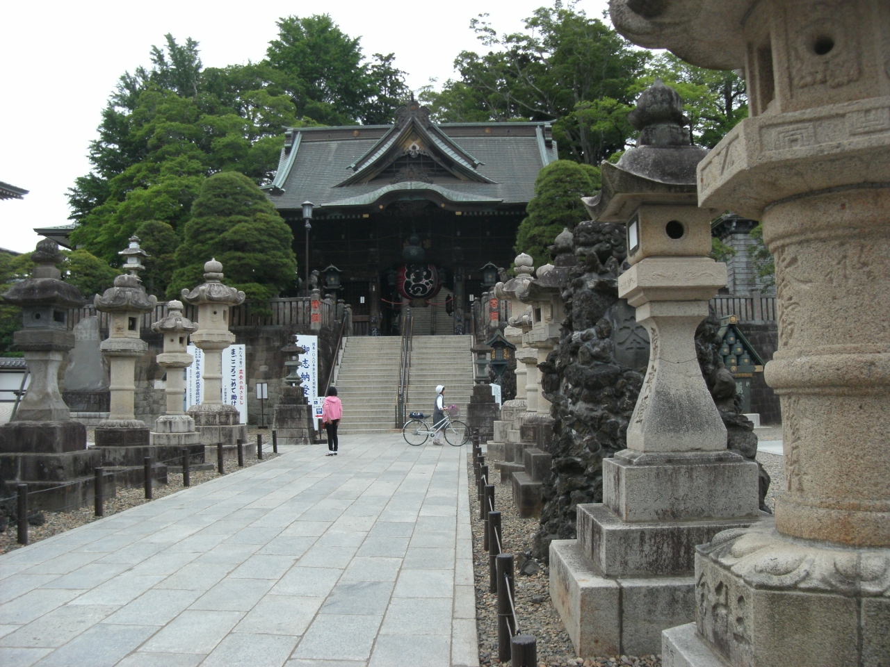 新勝寺正面に向かって灯篭が並んでいる先の階段上、入母屋造り・千鳥派風のある三間一戸八脚の山門があります。これが国の重要文化財である仁王門です。江戸末期に再建され、魚がしの大きな提灯がシンポル。江戸時代の魚河岸由縁のものといいます。