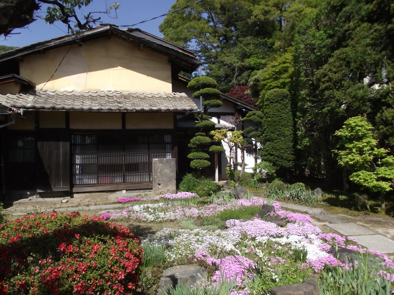 下諏訪宿の本陣だった岩波家で一部公開されている一つが、諏訪大社下社秋宮の境内を借景とした広大な庭園です。