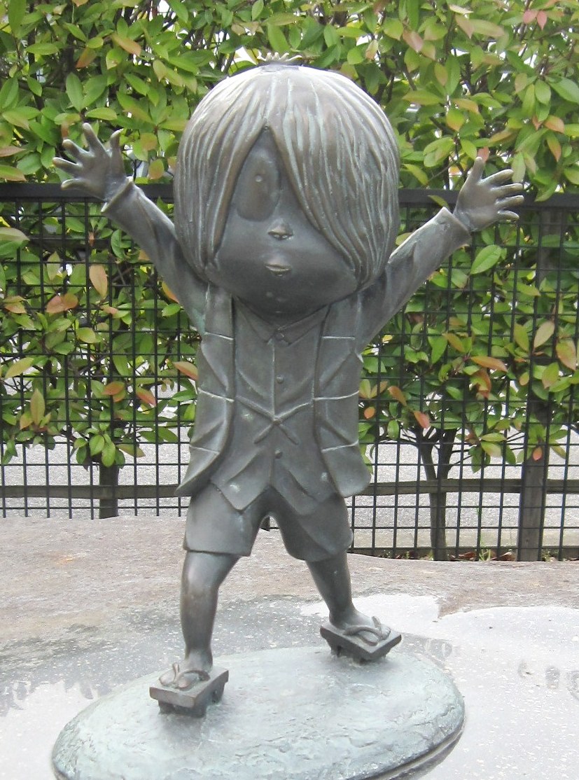鬼太郎、ねずみ男、目玉おやじ等のブロンズ像が沢山置いてある。