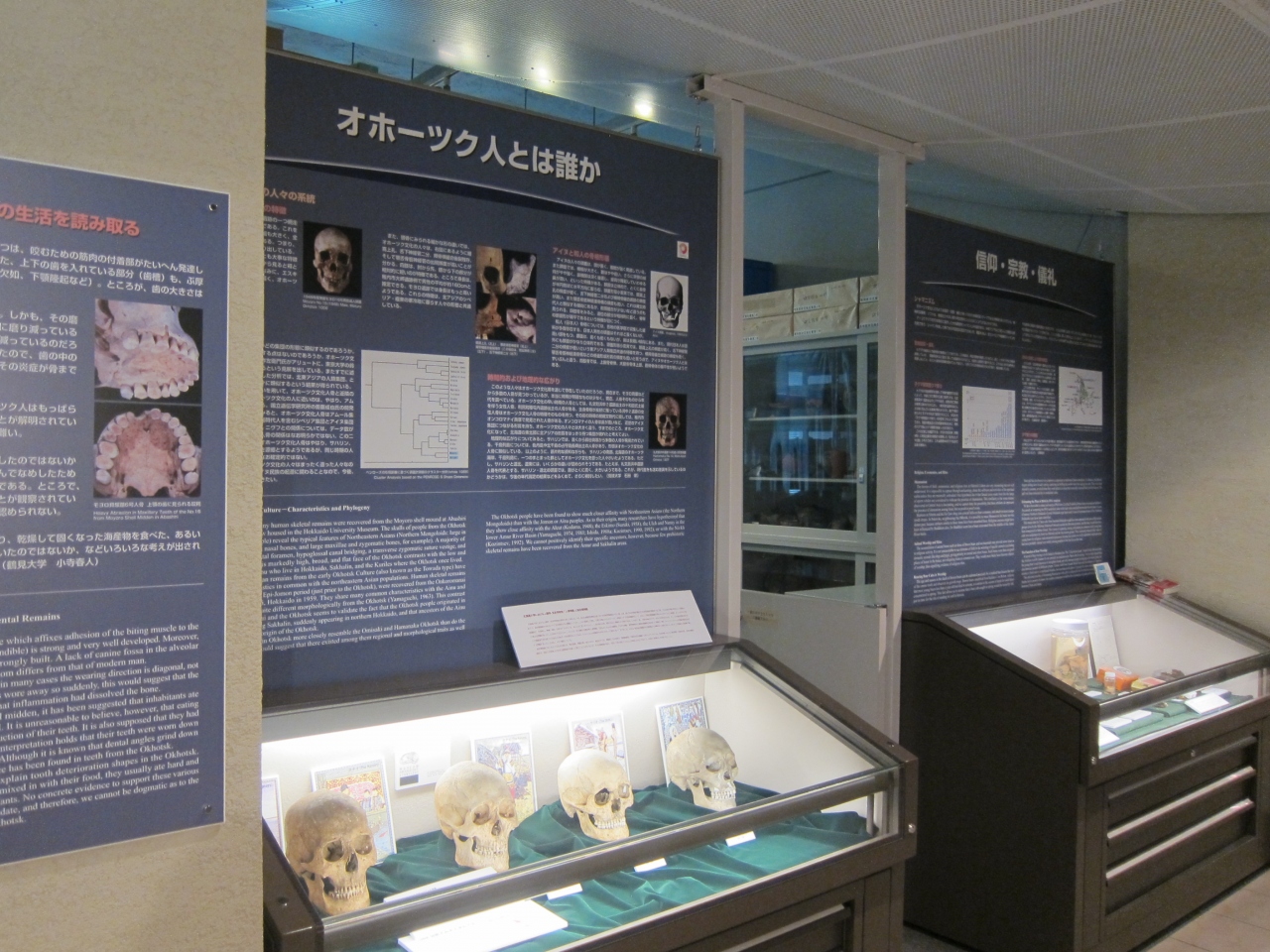 札幌駅からも比較的近い無料の博物館です。土曜・休日も開館しています。無料にしては意外にも展示品がよくそろっていて、北海道庁の展示品よりも見ごたえはあると思います。ミュージアムショップがありますが、カフェはありません。ただ、小道を挟んで北側に大学生協があり、焼きたてパン屋さんの店や食堂、売店があります。ここも時間制限はありますが土日も開いていますので休憩によいと思います。北海道にある博物館ということで北海道、千島、カムチャッカ、アイヌ関係の展示物が多くありました。
