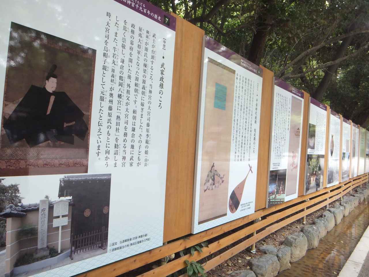 本殿へ向かう道には熱田神宮の歴史について記載されたパネルが展示されていて、想像以上に深い歴史があることを知りました。