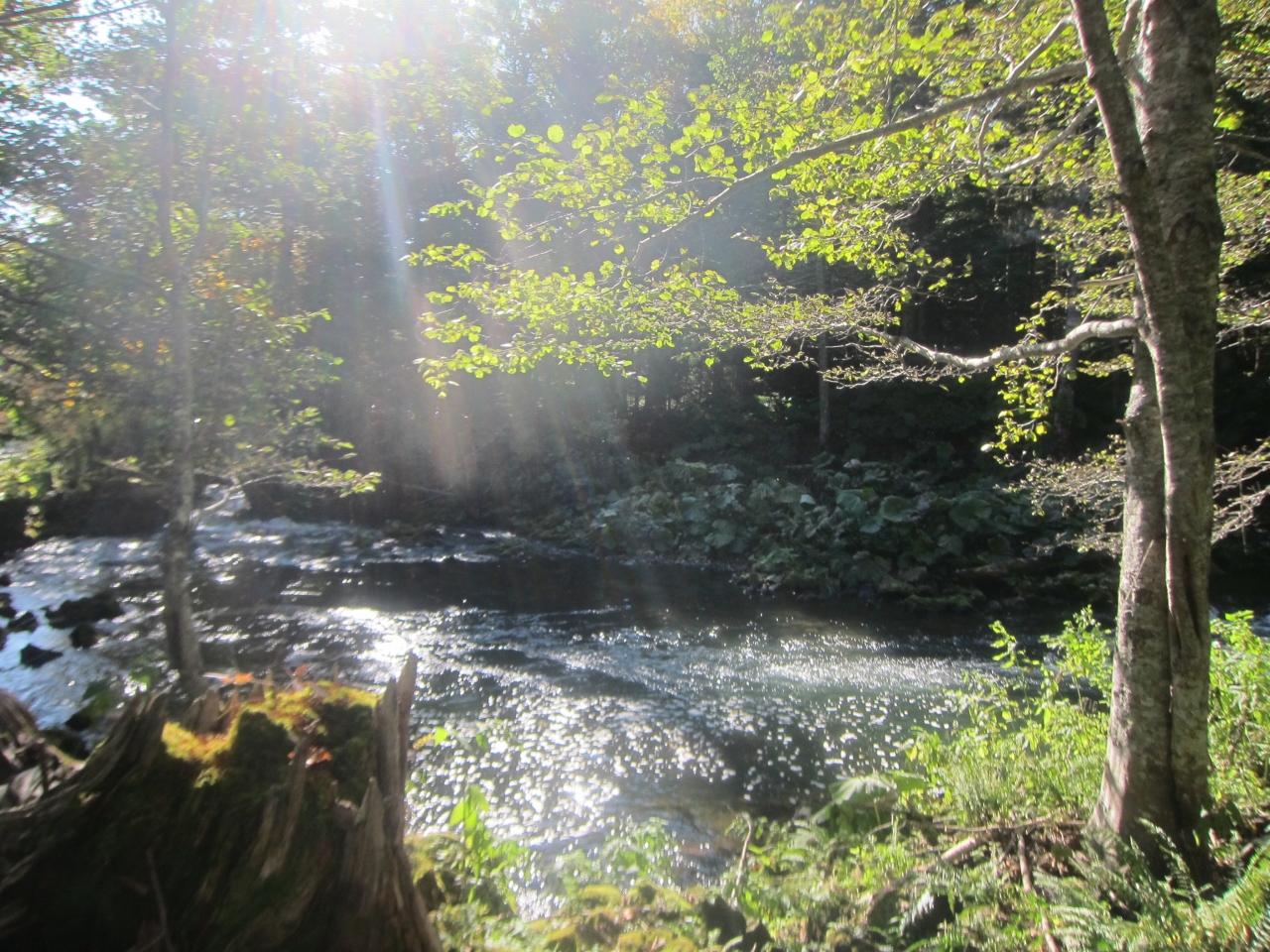 阿寒湖の東端、阿寒湖の水がここから流れ出し、阿寒川となって太平洋に注ぎだす口のところにあります。紅葉の時期に行きましたが、静寂の中、青い空に周囲の木々を映しこんですばらしかったです。国道240号線、阿寒湖滝口のバス停のあたりから200~300m入ったところです。太郎湖、次郎湖までの道は雄阿寒岳の登山道となっていますが、湖までは多少起伏がありますが、ほとんど平坦です。