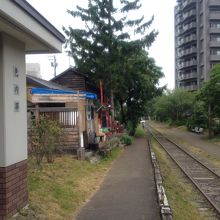 線路は残されていますが駅の広大な敷地が残されているわけではないので、表示がないとここが駅だったと実感できません。