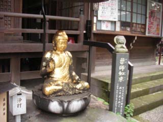 目黒駅から急な行人坂を下った途中に大円寺があります。山手七福神の大黒天で、江戸三大大火の一つの明和の大火の火元で、崖沿いに供養のための五百羅漢が並んでいます。海から引き上げられた「とろけ地蔵尊」や、正月の松の内、4月8日の花まつりに御開される帳生身の釈迦如来立像といった気になる仏像もあります。