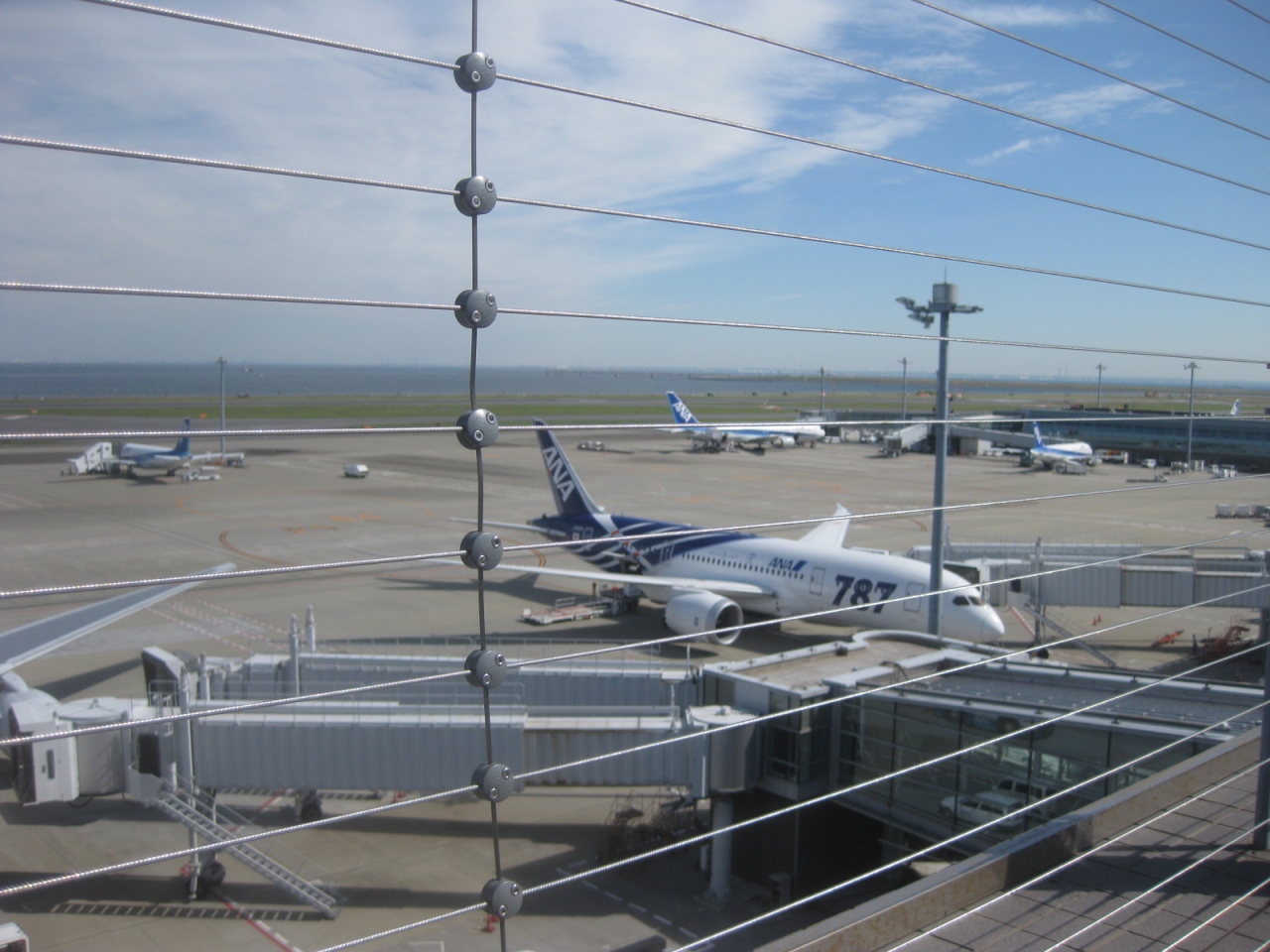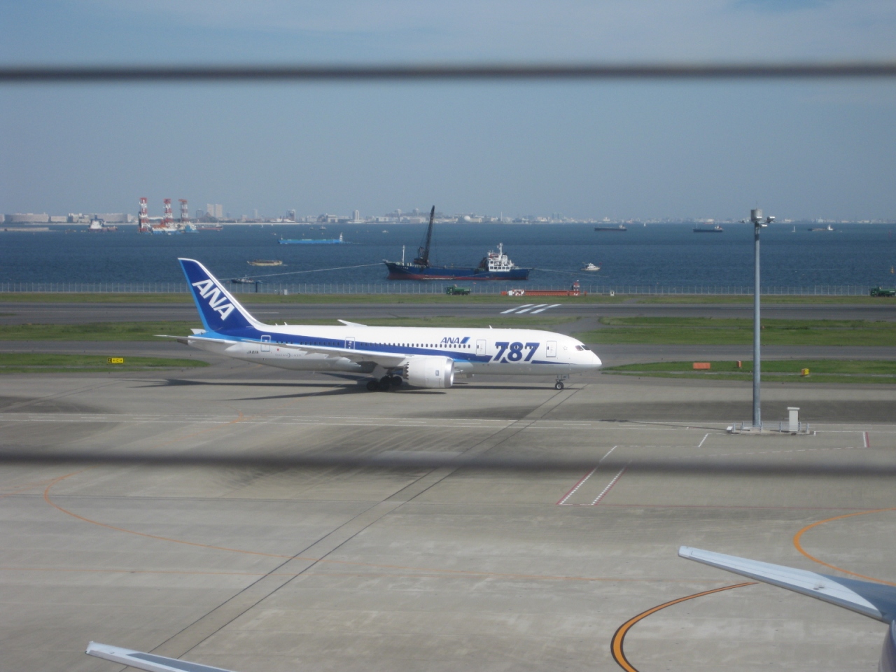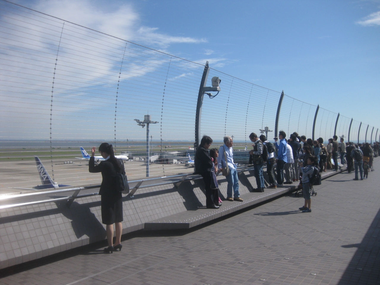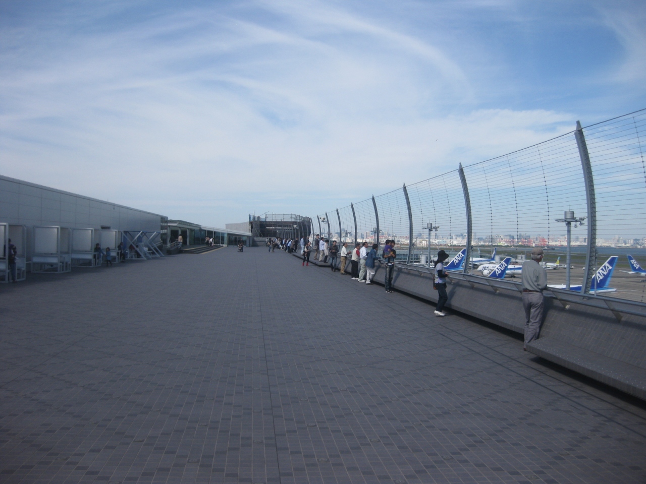 羽田空港国内線第2ターミナルの展望デッキに行って来ました。正確には旅行の前日、羽田エクセルホテル東急に宿泊していた時、ひまつぶしに訪れただけですが、予想以上に良い場所でした。天気が良く、日差しはポカポカ、海風が優しく吹き抜けるという絶好の見学日和、目の前は駐機場、その先には滑走路を疾走する飛行機、さらに海を隔てた遙か向こう側には舞浜のホテル群とディズニーランドという光景。家族連れの姿も多く、のんびり、のどかな雰囲気に包まれていました。せっかくなので夜の姿も見てみたいと思い、夕食後に再び訪れました。夜の展望デッキには滑走路を模したライトが点灯し、大人の雰囲気が漂う光景に変身していました。昼と夜、どちらの姿も見ることができて、大満足でした。