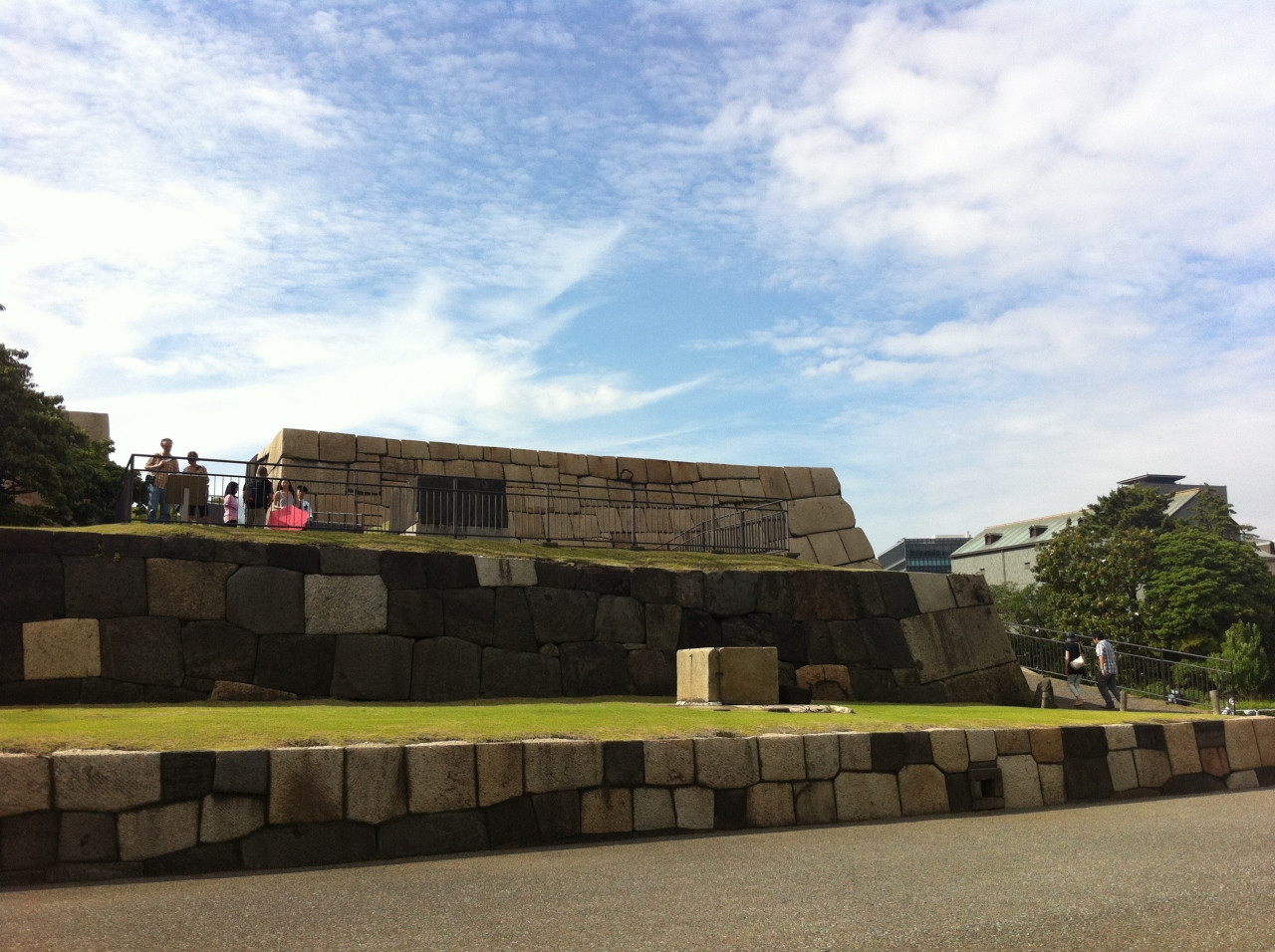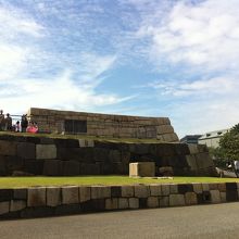 江戸城跡の一番奥にそびえる大きな石垣が、天守閣跡です、