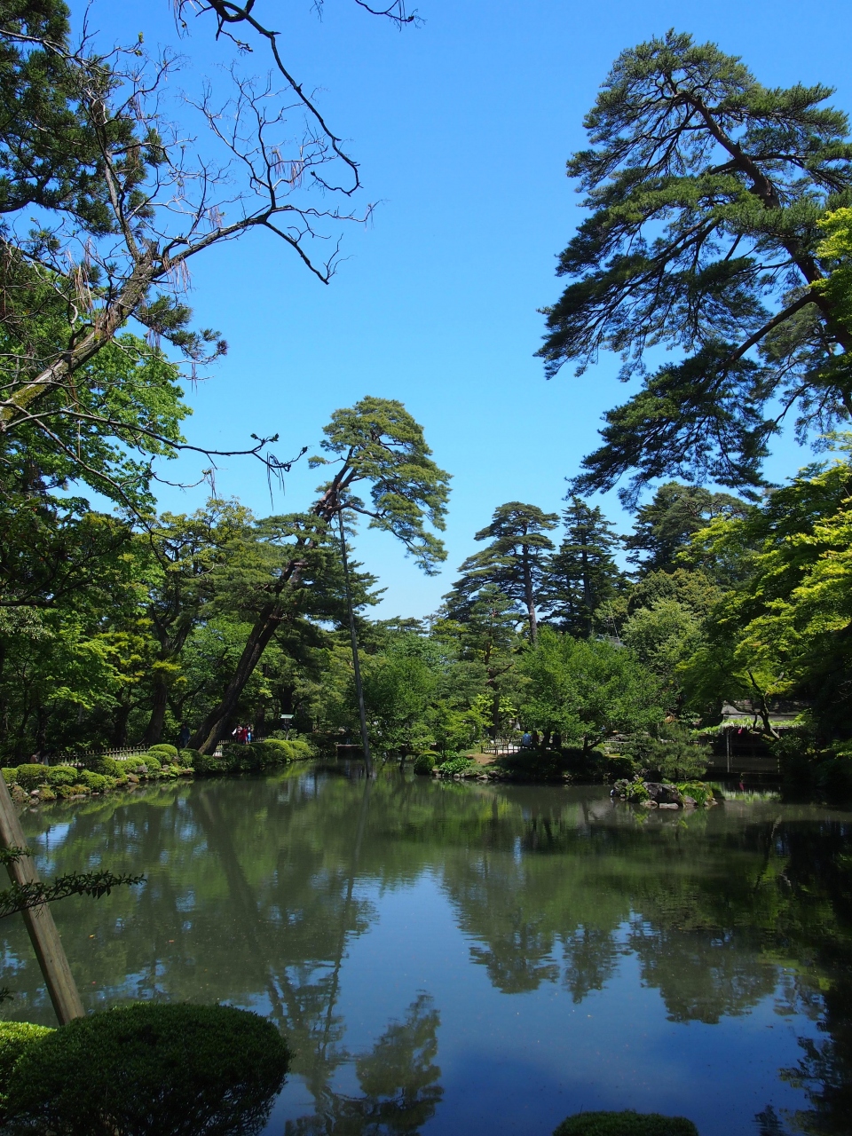 兼六園の中でも、霞ヶ池、徽軫(ことじ)灯籠とかに比べたらそこまで名前がメジャーではない瓢池。 近くに夕顔亭があったり、翠滝などもあります。 色々な木々が植えられているので、季節によって風景が変わる池だと思います。 真弓坂入り口から入場した場合は、1番最初に見えてくるのが、瓢池です。