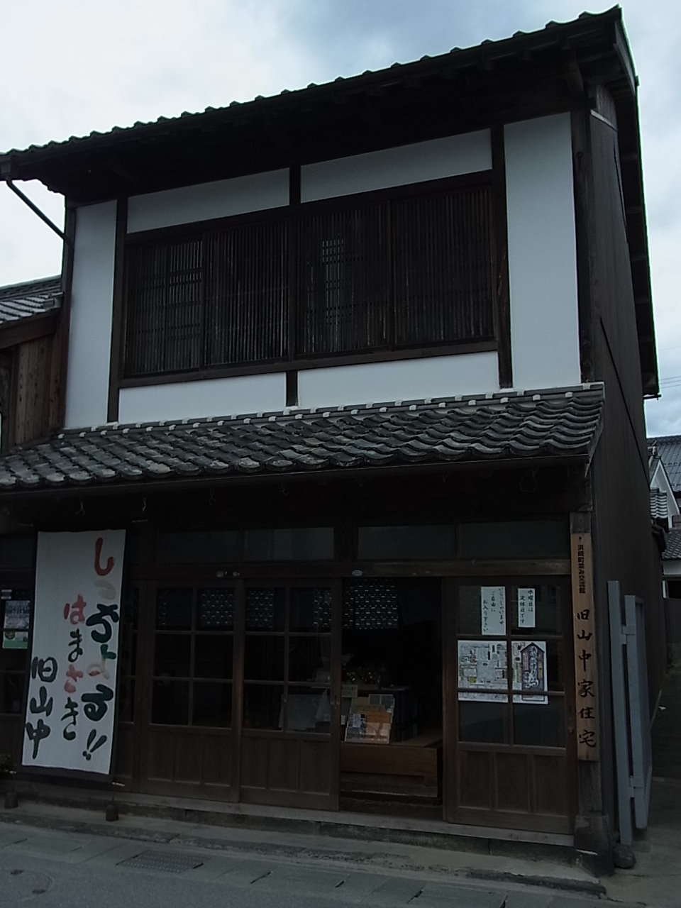 浜崎伝建地区の中心部に位置し、浜崎本町筋から裏のとおりまで抜ける細長い敷地に、表から主屋、付属屋、土蔵が建ち並んでいます。